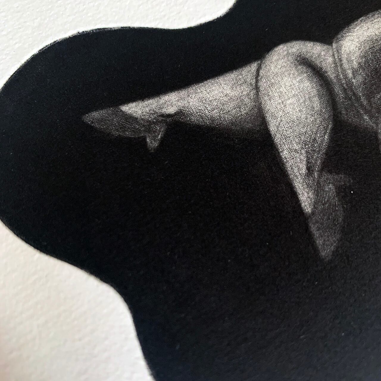 メゾチントという先に版に傷をつけてから、磨いて白く浮きだたせる手法で作りました。